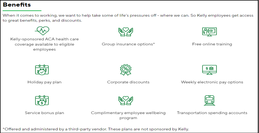 Kelly offers a variety of employee plans and resources that support our employees' health and retirement-related goals.